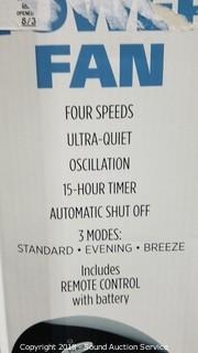 Like new, complete. Four speeds, oscillation, 15 hr. timer, has remote control, 3 modes.
