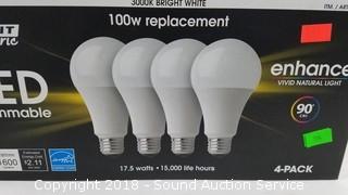 Lot #0196: Feit 4-Pack LED Dimmable 17.5W Light Bulbs