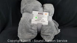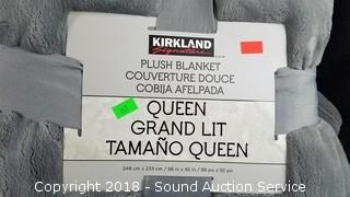 Lot #0262: Kirkland Grey Queen Plush Blanket 92" x 98"
