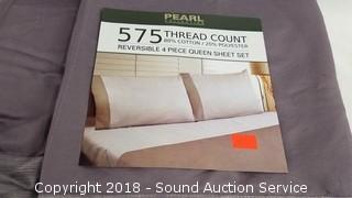 Lot #0306: Pearl Reversible 4pc. Queen Sheet Set
