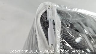 Comes in original packaging. You get 2 grommet panels, each panel is 52" x 84". Blocks 99% of outside light. Bristol frost grey color.