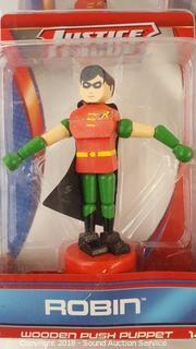 Lot #0061: 11 NIP Justice League Wooden Push Puppets & Totems