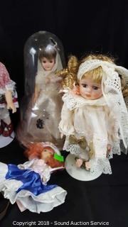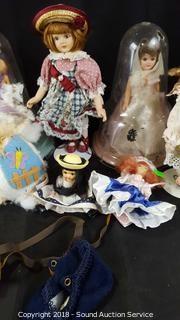 Includes: (4) 1960's Storybook Dolls w/Displays, 3 Porcelain Dolls w/Stands, 5 Porcelain Miniature Madame Alexander & Cameo Kids Collection Dolls, Musical Doll and Bunny.