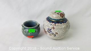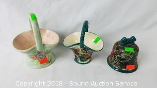 Includes: Enamel Brass Urn, Irish Porcelain Dish, Radford handled basket & more. Some are artist signed refer to photos. Approx. 2" - 5" tall.