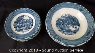 Lot #0325: 9pc. Vtg. Currier & Ives by Royal Plates & Bowls