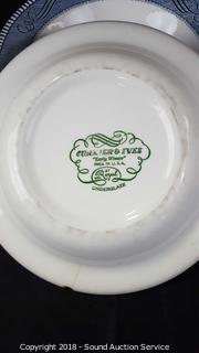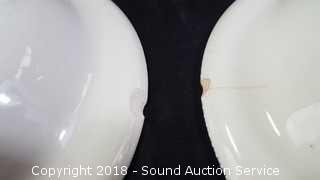 Includes: (4) 8-1/4" bowls (2 have a chip), and (5) 6.5" plates (no chips).