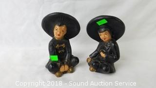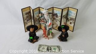 Includes: Privacy Screen, 2 Chalk Figures & Porcelain Figure. Approx. 5" to 9-1/2" tall.
