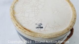 Includes: Carlton Ware Hand Painted in Gold Made in England "Rouge Royale" Pitcher (Signed and numbered), Hand Painted Enamelware Vase, and Made in Japan Pottery Ice Bucket (Lots of crazing, some chips). Approx. 5.5" to 6.5" H.