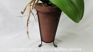 Lot #0353: Faux Potted Orchid & 2 Pottery Planters
