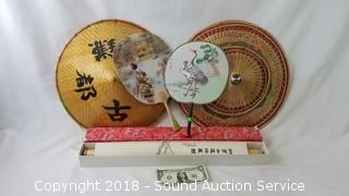 Lot #0398: Genuine Asian Sun Hats, Fans & Scroll Artwork