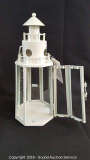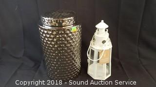 Lot #0060: Hammered Porcelain Canister & Candle Lantern