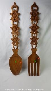 Lot #0009: Large 40" Wooden Fork & Spoon Decor