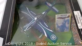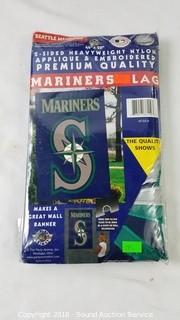 Includes: 1:48 Limited Edition Numbered Fleer Collectibles Seattle Mariner P-51 Mustang Plane (in original packaging), 44" x 28" 2 Sided Heavy Weight Nylon Embroidered Mariners Flag, and Authenticated Infield Dirt Safeco Field Etched Gold Metallic Plaque with Solid Bronze Medallions #150 (Approx. 13" square).