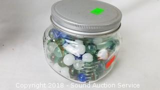 Lot #0197: NIB Poker Chips Set & Jar of Marbles