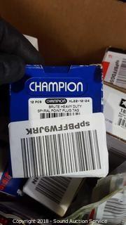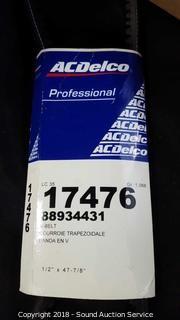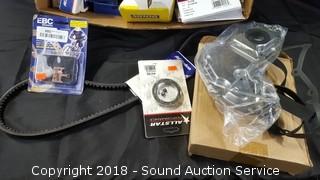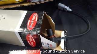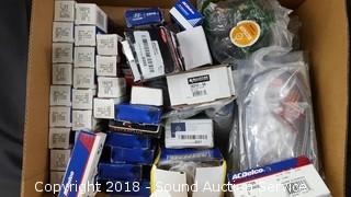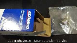 Mostly AC Delco. Includes: Throttle positioner, 1/2" x 47-7/8" V-belt, mountain bike brake pads, disc brake pads, (18) ACD# PT709 connectors, Wix premium filter 58937, Mercedes Benz Elektromagnet, 4-pack Bosch super plus copper spark plugs 7909, (5) Boxes of Champion 12pc. Brute heavy duty spiral point plug XL 22-12-24, national oil seals 6840S, Moog steering and suspension problem solver, and more.