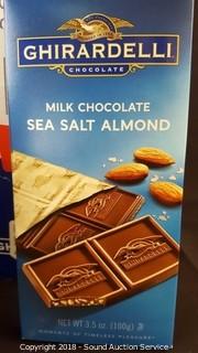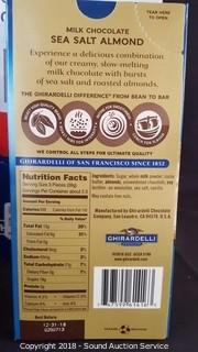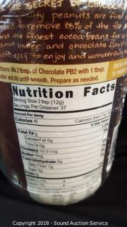 Includes: 16oz PB2 with premium chocolate, and 16oz powdered peanut butter, and (12) 3.5oz bars of Ghirardelli sea salt and almond chocolate. Peanut butter is sealed, best by March 12, 2020. Chocolate is best by 12/31/2018.