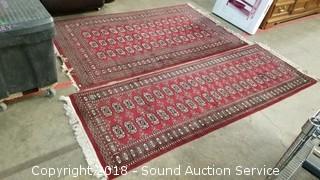 Lot #0156: Red Wool? Area Rug w/Matching Runner Rug