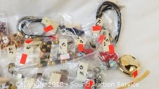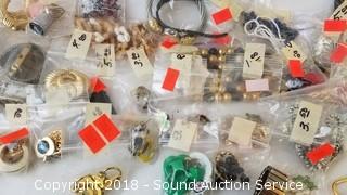 Already sorted and priced. Includes: earrings, pill container, watches, rings, necklaces, brooches, and more. Tote is included.