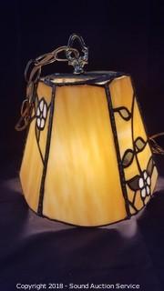 Lot #0323: Vtg. Leaded Slag Glass Hanging Swag Lamp