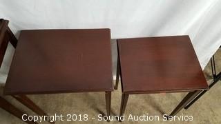 Lot #0257: Vtg. Mahogany Mersman Graduating Table Set