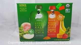 Includes: Apple Guava Kale Strawberry Parsley Chia, and Banana Carrot Mango Orange Wheatgrass Turmeric Chia. Best by September 18, 2019.