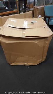 Tilt and cushion seat, missing the rolling base, no legs, no casters. Comes in original box.