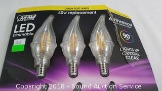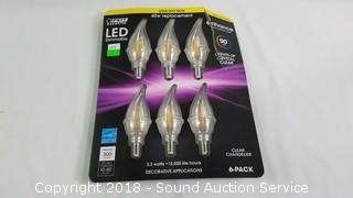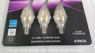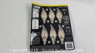 Lot #0035: 6 Feit LED Dimmable Crystal Clear Chandelier Bulbs