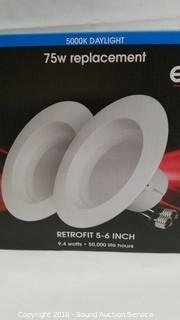 2-pack, fit 5-6" housings, 75 watt replacement, uses only 9.4 watts, 850 lumens, 5000k daylight color. Like new in original packaging.
