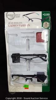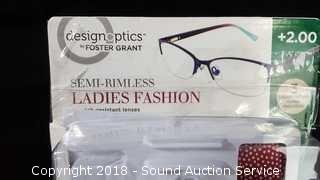 Lot #0408: Foster Grant +2.0 Semi Rimless Reading Glasses
