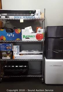 Includes: Daewoo Retro Style Refrigerator, Midea Stainless/Black Compact Refrigerator, Cascade Tower Fan, Motion Activated Security Light, Retro Fit Kit, Window Fan, Neat Freak Organizer, Personal Fan 2-Pack, LED String Lights, Pencil Sharpener, Hard Case Spinner Luggage, Vanity Light, Power Failure Night Lights, Flashlights, Coffee Pot, Waterpik Water Flossers, and more.