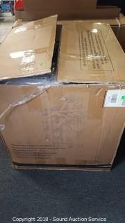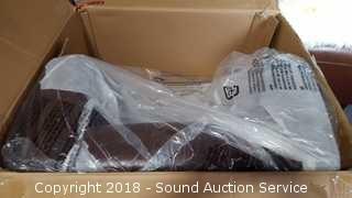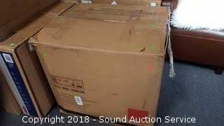 Manufactured in 2018. Brand new in original box. Brown. Approx. 31" H, 32" W, 30" D, 20" wide seat.