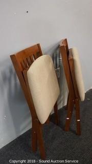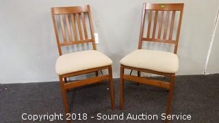 Lot #0156: Pair of Stakmore Wood & Fabric Folding Chairs