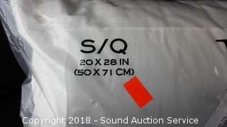 2-Pack, 20" x 28", 500 thread count, 100% cotton outer cover, 300 thread count 100% cotton inner cover.