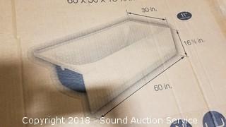 Overall 60" x 30" x 16-5/8". Left hand drain. Reclined back rest. Like new in original box.