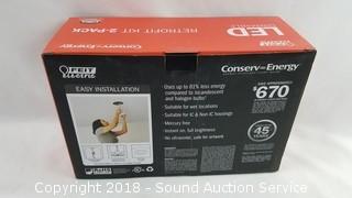 2-Pack. In original packaging. 75 watt replacement, uses only 14 watts, 850 lumens, 2700k color, 100 degree beam angle.
