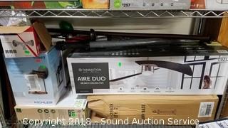 This auction consists of variety of Ho, Ho, Home Improvement items. Includes: Kobalt Saw Horse, Air Compressors, Levolor Faux Wood Blinds, Ceiling Fans, Key Entries, Thermostats, Door Chimes, Smoke Detectors, Chandeliers, Vanity Lights, Table Saws, Hand Tools, Flashlights, Construction Tools, 24v Max 1/2 Drive Wrench & Blower, Gas Cans, Outdoor Lighting, Shop Lights, Beautiful New Area Rugs, Air Filters, Water Filtration Systems, Plumbing, Electrical Supplies, Elec. Console Fireplace, Elec. Pressure Washers, LED Lighted Mirror, Toilets, Stakmore Chairs, Bathtub, Fans, Heaters & Much More!