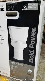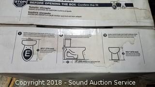 Comes in original box, like new condition. 16.5" from floor to top of bowl. 30-1/2" from wall to front of toilet. 12" from wall to floor bolt.