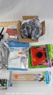 This auction consists of variety of Ho, Ho, Home Improvement items. Includes: Kobalt Saw Horse, Air Compressors, Levolor Faux Wood Blinds, Ceiling Fans, Key Entries, Thermostats, Door Chimes, Smoke Detectors, Chandeliers, Vanity Lights, Table Saws, Hand Tools, Flashlights, Construction Tools, 24v Max 1/2 Drive Wrench & Blower, Gas Cans, Outdoor Lighting, Shop Lights, Beautiful New Area Rugs, Air Filters, Water Filtration Systems, Plumbing, Electrical Supplies, Elec. Console Fireplace, Elec. Pressure Washers, LED Lighted Mirror, Toilets, Stakmore Chairs, Bathtub, Fans, Heaters & Much More!