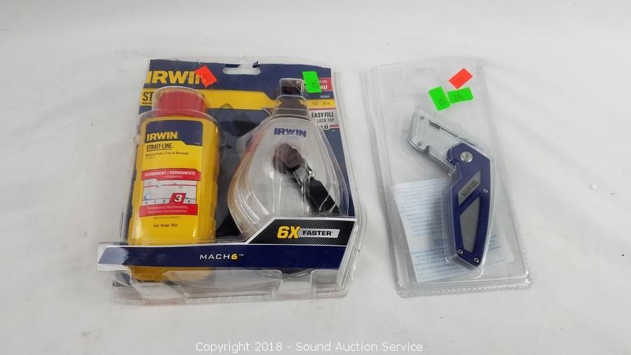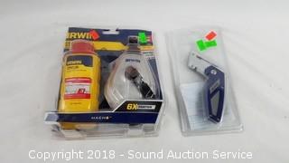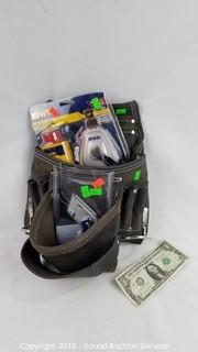 Lot #0329: Leather Tool Bag, Irwin Chalk Set & Utility Knife