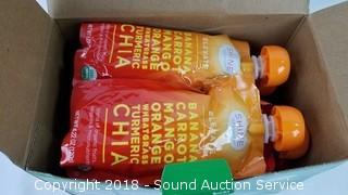 Includes: Apple Guava Kale Strawberry Parsley Chia, and Banana Carrot Mango Orange Wheatgrass Turmeric Chia. Each one is 4.2oz.