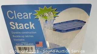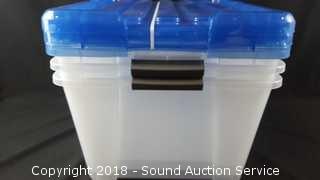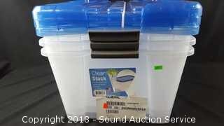 Lot #0185: (3) 45QT Clear Stackable Storage Totes w/Lids