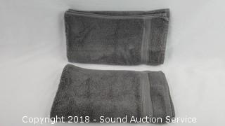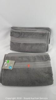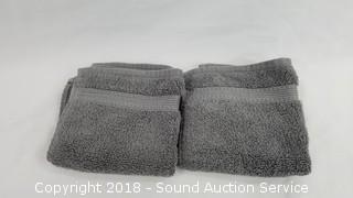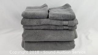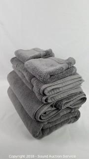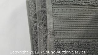 100% cotton. Includes: 2 bath towels 30" x 58", and 2 washcloths & 2 hand towels 16" x 30". Grey color. One bath towel is NWT and has some loose threads.