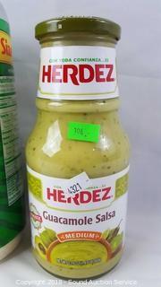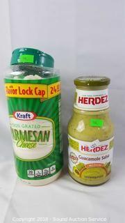 Includes: Herdez Medium Guacamole Salsa 23.6oz (Best by August 2019), and Kraft 24oz Parmesan Cheese (Best by June 23, 2019, some damage to the bottle, still sealed).