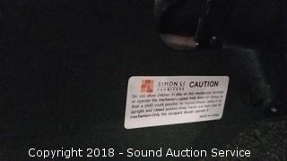 By Simon Li. Walnut brown. In excellent condition. Approx. 39" tall, 36" wide, 34" deep with a 20" wide seat.
