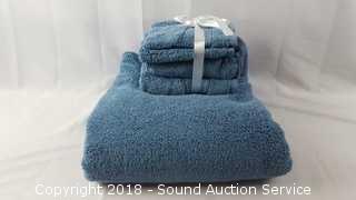 Includes: 1 bath towel, 2 hand towels, and 2 washcloths. Blue color.