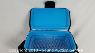 Like new condition. Comes with removable tray insert and shoulder strap. Blue color. Approx. 12" x 12" x 7".