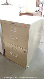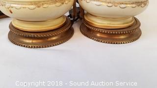 Includes: Pair of Vtg. Coronet Porcelain Lamp Bases. Anderson Hickey Co. 2 Drawer Metal File Cabinet. Dell 1130 Monochrome Laser Printer.