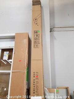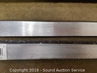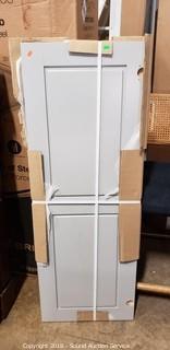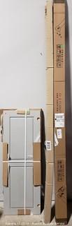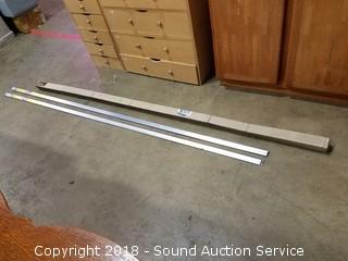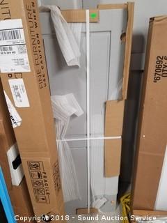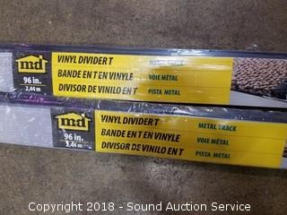 Includes: 2 NEW MD 96" Black Vinyl Divider T's w/Metal Track. 1pc. 8'ft Dove White Starter Corner Molding. Grey Cabinet Door - 49-1/4" x 17-3/4".