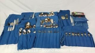 Mostly Community all the same set. Includes: 16 Small Spoons, 8 Soup Spoons, 8 Butter Knives, 8 Spreaders, 8 Dinner Forks, 8 Salad Forks, Carving Set, and 11 Serving Utensils, 12 Hor'Deouvore Forks & 8 pieces of various utensils. Comes with Silver Cloth Storage Bags. Includes: Community, BNE,