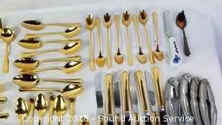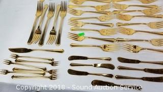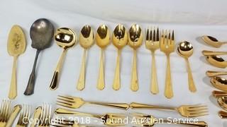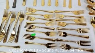Lot #0284: Oneida Gold Tone Flatware Set & Utensils